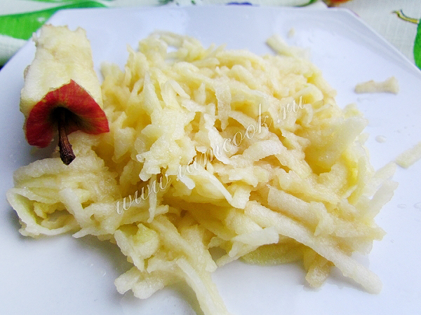 Яблоко очистите от кожуры и сердцевины, натрите на крупной терке.