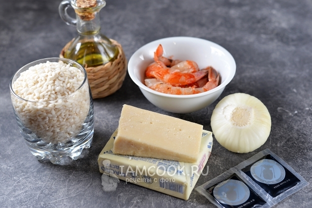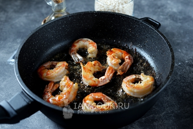 Подготовьте продукты по списку. Лук очистите от шелухи, помойте под проточной водой. Креветок очистите от панциря, крайнюю фалангу - хвостик - оставьте для красоты.