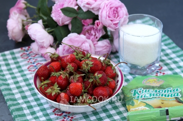 Для приготовления клубнично-розового варенья подготовить из списка необходимые ингредиенты. Замечу, что лимонная кислота в рецепте не обязательна, варенье и так будет хорошо храниться. Просто когда я варю чисто розовое варенье, я добавляю кислоту, чтобы лепестки не выглядели грязными и сохранили красивый розовый цвет.