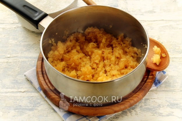 Перекладываем дробленую мякоть в емкость с толстым дном и отправляем на слабый огонь. Пускаем сок, часто мешаем и провариваем 15-20 минут.