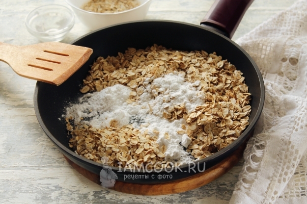 Возвращаемся к овсяным хлопьям на сковороде. Поддерживаем умеренный нагрев.