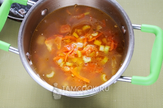 Когда сварятся в бульоне овощи (картофель и капуста), введите заправку.