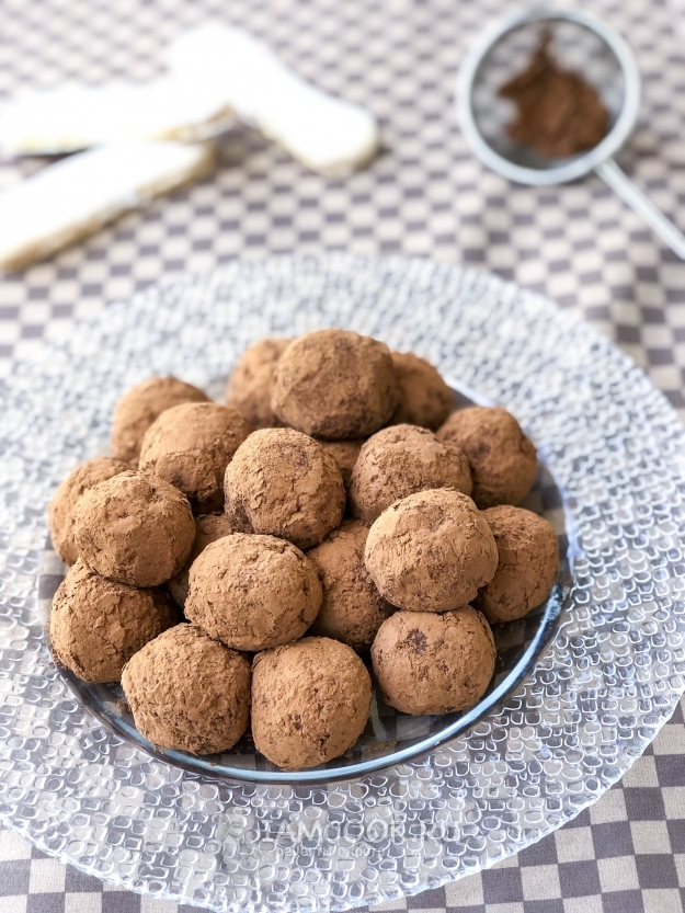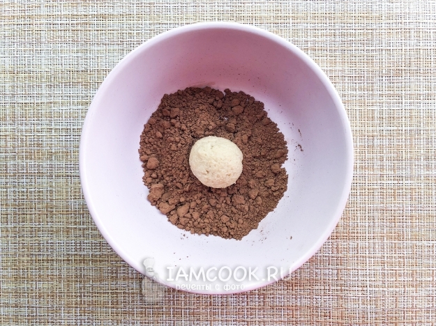 Обваляйте каждый шарик в какао и выложите на тарелку.