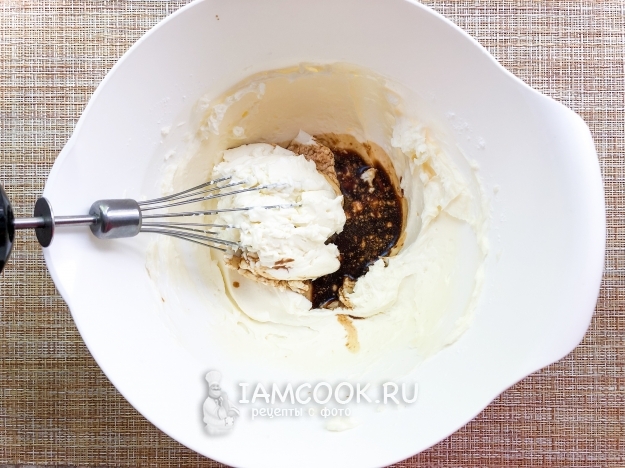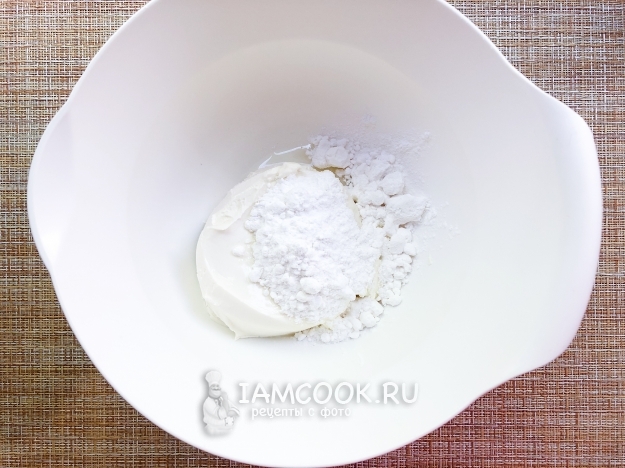 Маскарпоне взбейте с сахарной пудрой до однородной массы.