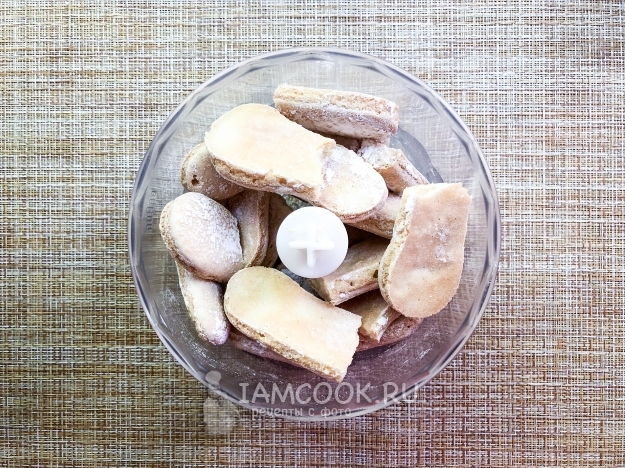 Печенье "Савоярди" измельчите в блендере в мелкую крошку.