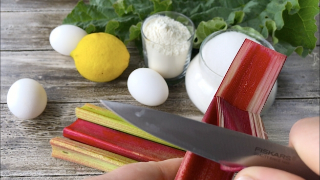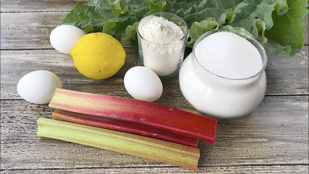 Итак, подготовим все необходимые продукты для шарлотки с ревенем.