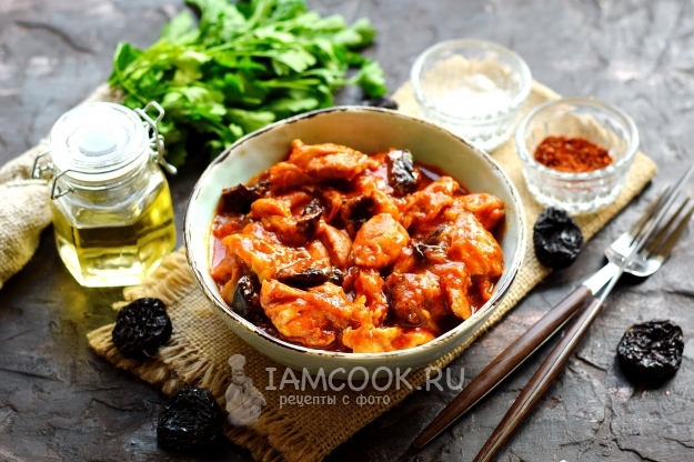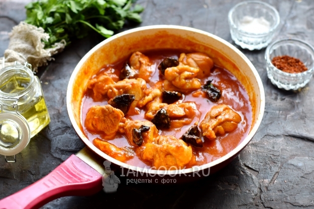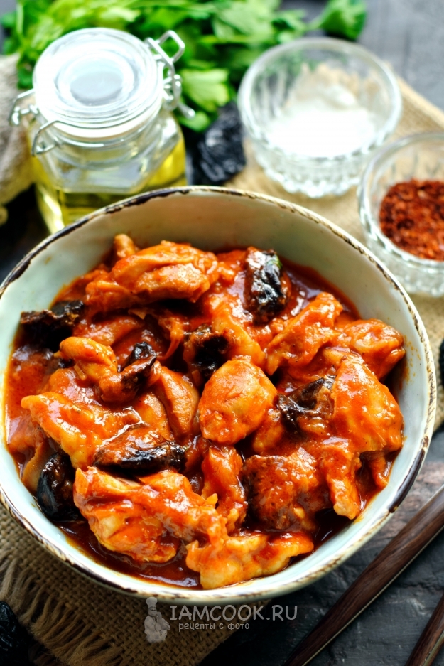Курица с черносливом в томате обладает гармоничным вкусом, получается нежной и сочной.