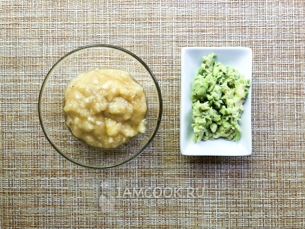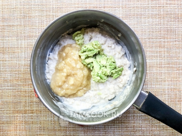 Банан и авокадо измельчите в пюре, я это делаю вилкой.
