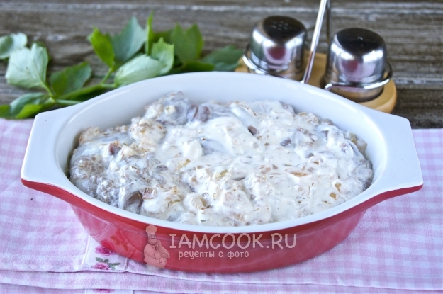 Выложим в огнеупорное блюдо нужного размера, поставим в разогретый до 180-190 градусов духовой шкаф на 30-40 минут. Готовность проверим шпажкой или острием ножа: если сок прозрачный, то печень готова; если розовый, оставьте печень индейки в духовке еще ненадолго.