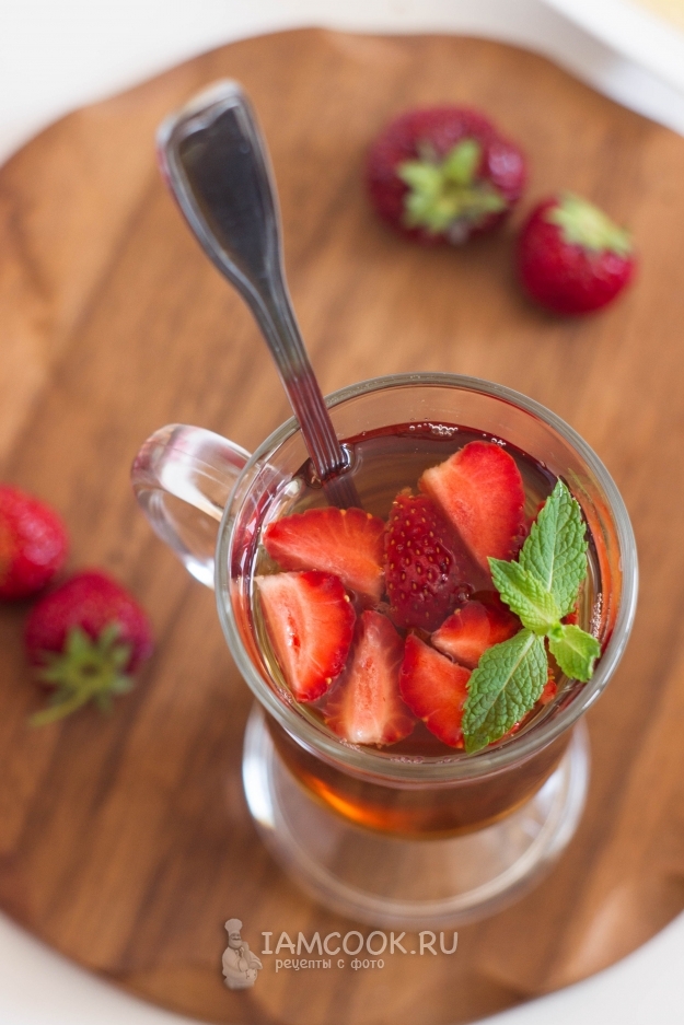 Сразу же подавайте готовый чай с клубникой и мятой к столу!
