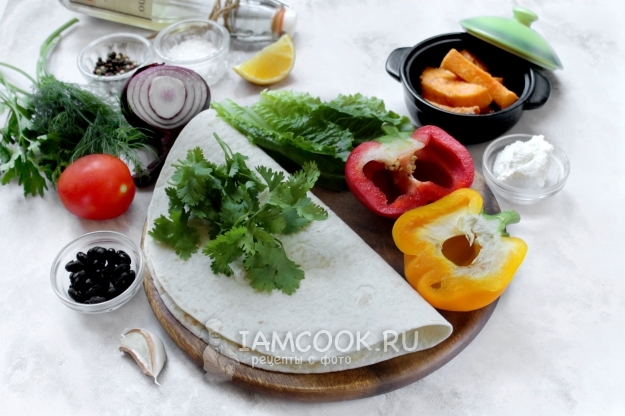 Чтобы собрать тортилью с овощами, возьмите продукты по списку.