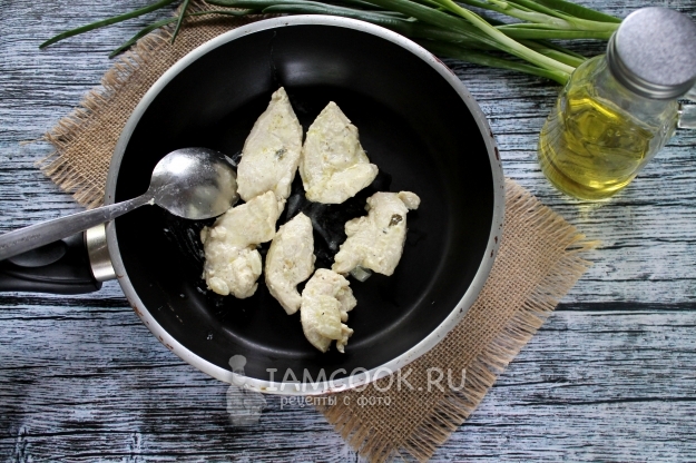Филе индейки заранее отварите или потушите на сковороде до готовности. Охладите.