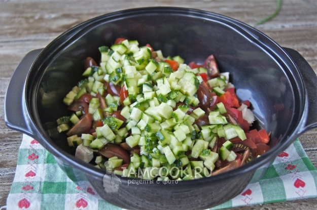 Огурцы вымойте и нарежьте на маленькие кубики.