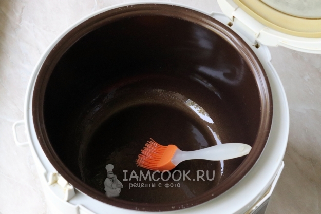 С помощью силиконовой кисточки смажем чашу мультиварки тонким слоем растительного масла.