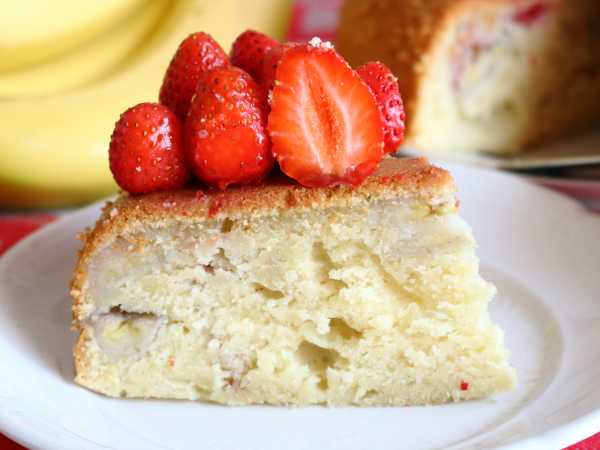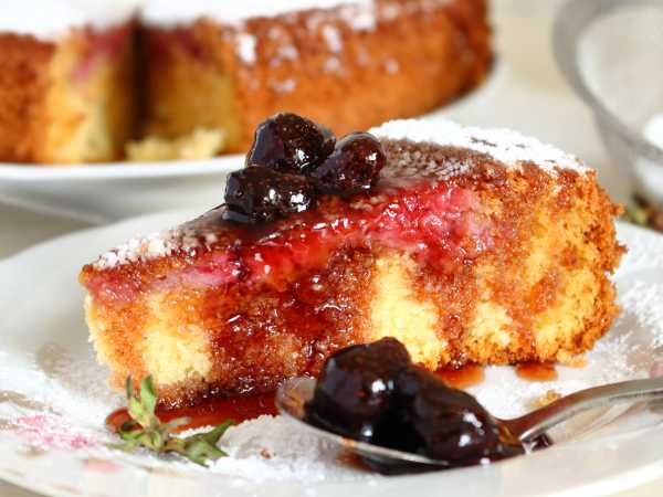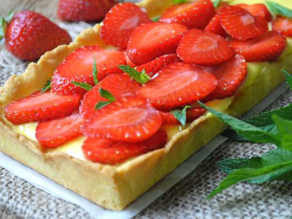 Подаем клубничный пирог в охлажденном виде.