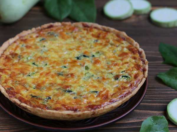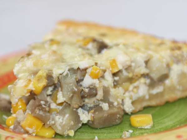 Заливаем сметанной смесью и возвращаем в духовку, допекаем при температуре 180 градусов следующие 25-30 минут.