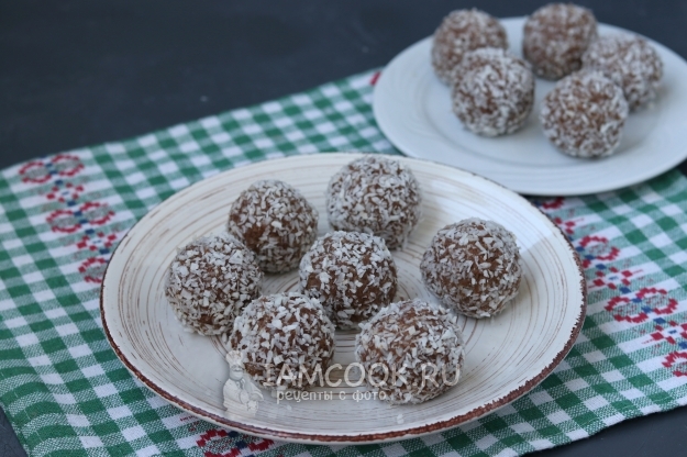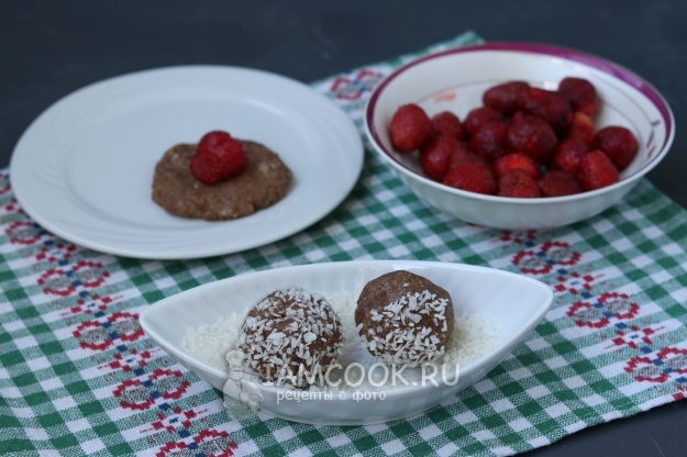 Из полученной массы сформировать лепёшку, в центр поместить клубнику, закрыть со всех сторон и скатать шарик. Обвалять шарики в кокосовой стружке.
