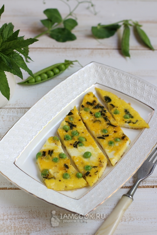 Так что не будем терять утреннее время зря, возьмем все необходимое и приготовим вкусный и легкий омлет с зеленым горошком и мятой.