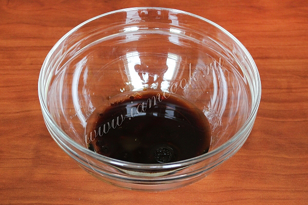 Соедините терияки и оливковое масло.