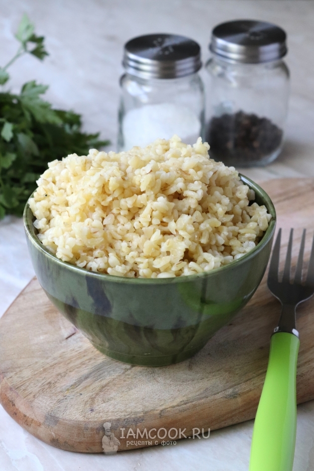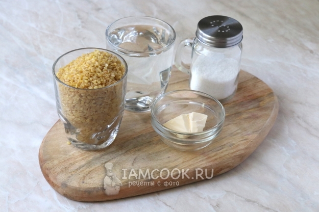 Продукты для приготовления булгура на гарнир в мультиварке подготовьте по списку ингредиентов.