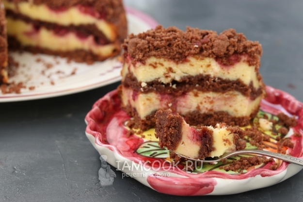 В этом пироге начинка отлично сочетается с шоколадной крошкой и сочными ягодами! Советую попробовать!
