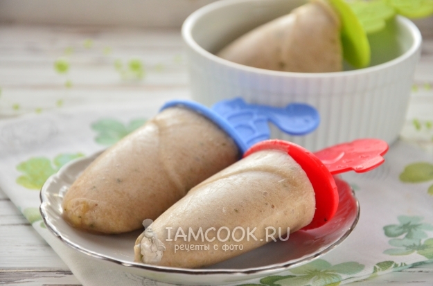 Разложите ароматную фруктовую массу по формочкам и поместите в каждую из них палочку. Отправьте в морозилку на несколько часов.