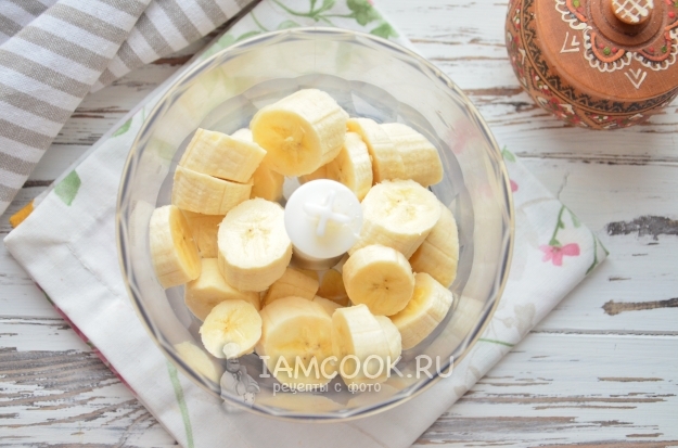 Очистите банан и нарежьте серединку небольшими кусочками - чтобы блендеру было удобнее справиться. Сложите в чашу блендера.