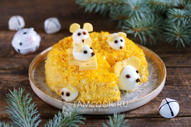 Разложите мышек по блюду и можно подавать к столу - салат «Мышки в сыре» готов.