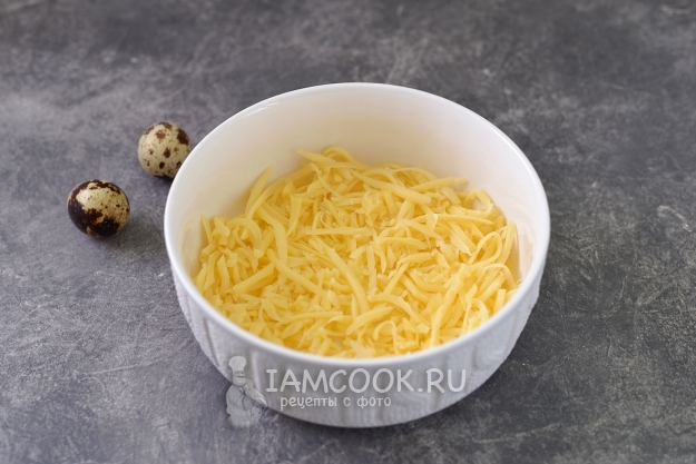 Если у вас есть разъемная форма 14-16 см в диаметре - я вам завидую)), мне пришлось пользоваться небольшой пиалой с высокими бортиками. Я выкладывала слои в обратном порядке. Первый слой - натертый сыр.