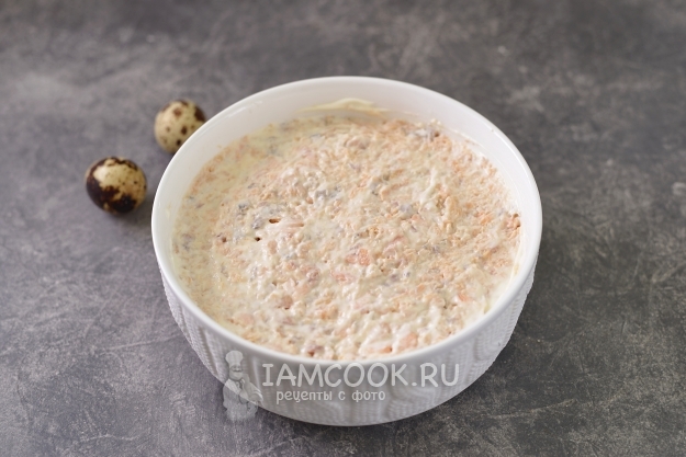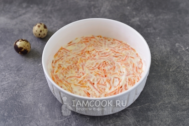 Дальше идет слой моркови, его мы смазываем майонезом.
