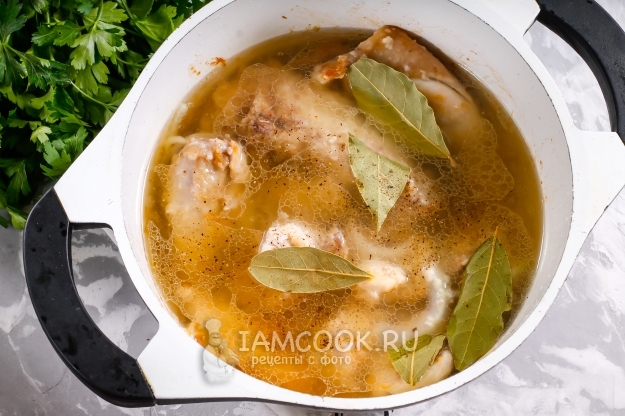 Влейте горячую воду, добавьте лавровые листья и тушите около 40 минут на среднем нагреве, прикрыв емкость крышкой.