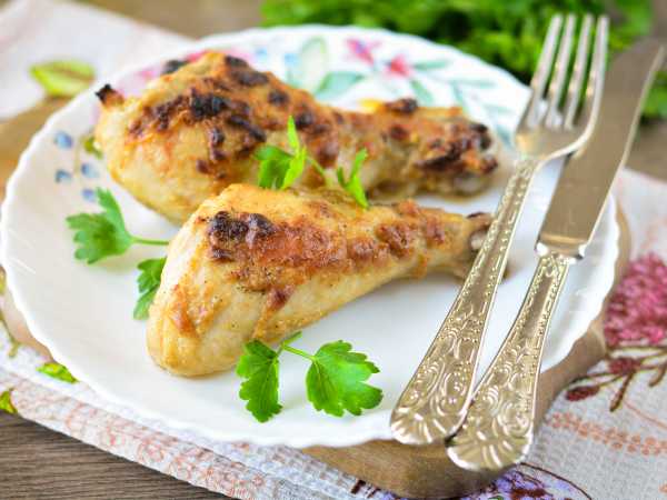 Спустя время голени переложить в форму для запекания. Полить маринадом и отправить в разогретую духовку при 180 градусах.