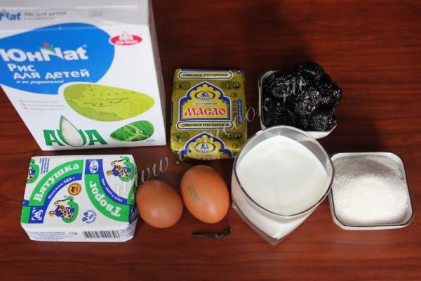 Рецепт этой творожно-рисовой запеканки я взяла из книги Юлии Высоцкой «Детское питание от рождения и старше». Это сбалансированное и полезное блюдо, особенно подходящее на завтрак. Предлагаю вариант - с черносливом, также вкусно с яблоками, грушами, изюмом, разными ягодами. Рис выбирайте практически любого сорта: круглозерный, ЮнNat, для суши, жасмин, длиннозерный и т.д.