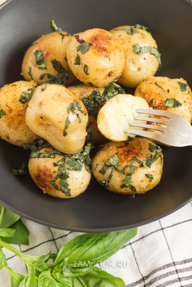 Картошка с базиликом готовится из молоденьких клубней, поэтому блюдо получается очень аппетитным: обжаренный молодой картофель - это априори вкусно!