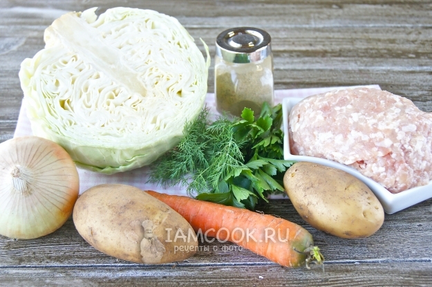 Итак, подготовьте все необходимые продукты для супа с фрикадельками и капустой.