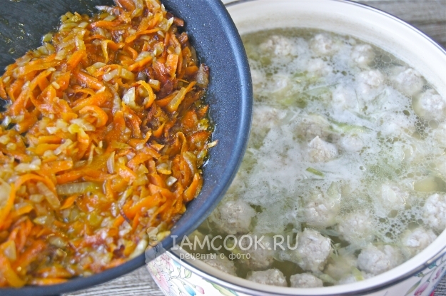 Овощную зажарку опустите в суп.