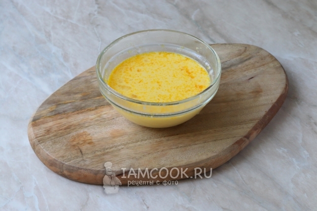 Отдельно в миску выливаем оставшееся молоко, добавляем крахмал, яичный желток и рисовую муку. Тщательно перемешиваем до однородного состояния.