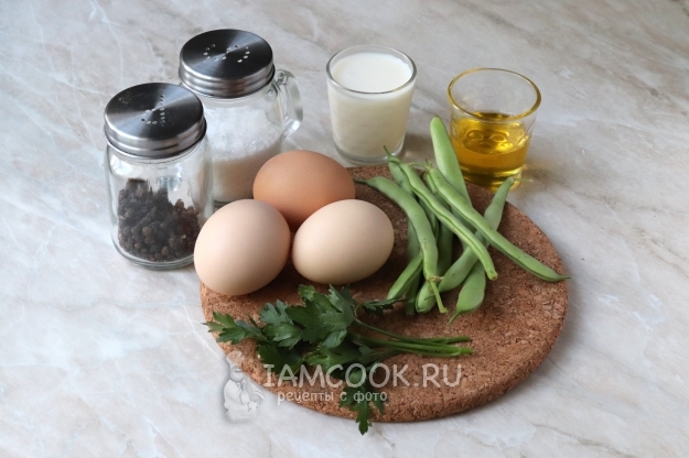 Продукты для омлета со стручковой фасолью подготовьте по списку ингредиентов.