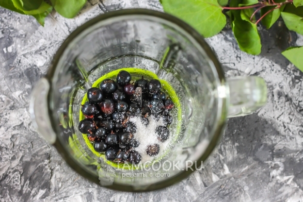 Высыпьте ягоды в чашу блендера и засыпьте их сахарным песком.