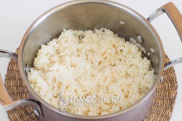 Рис промойте, на дне кастрюли разогрейте 1 ст.л. растительного масла, выложите рис и, часто помешивая лопаткой, обжаривайте до полупрозрачности рисинок и шелестящего звука при помешивании. Очень осторожно, сначала по столовой ложке, добавьте кипящую воду так, чтобы вода распространилась по дну. Рис пропарится и будет более рассыпчатым. Добавив всю воду, положите 0,25 ч.л. соли и варите под крышкой 20 минут на самом маленьком огне. Вспушите готовый рис вилкой.