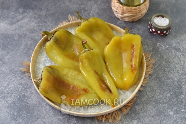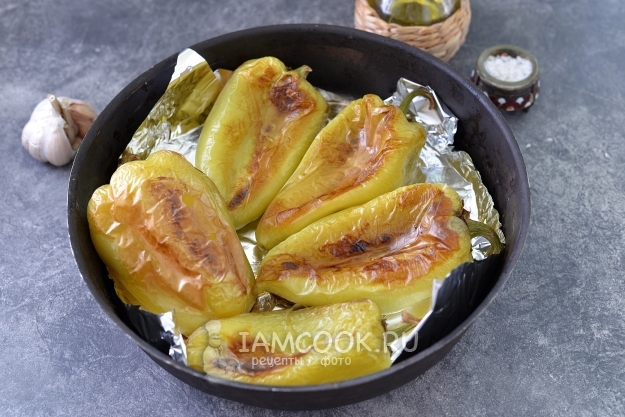 Когда кожица на перцах вздуется и станет карамельного цвета - перец готов. Остудите его, очистите от кожуры. Держа перец за хвостик, сделайте прокол в носике, дайте полностью стечь жидкости, ее в перцах может быть много внутри.