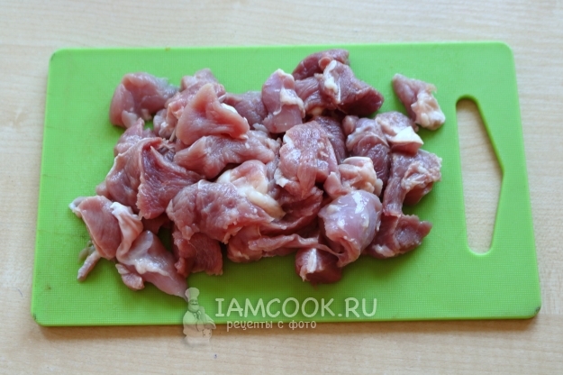 Мясо тщательно промываем. Если используете филе, нарежьте на куски желаемого размера. Я также режу гуляш под себя.