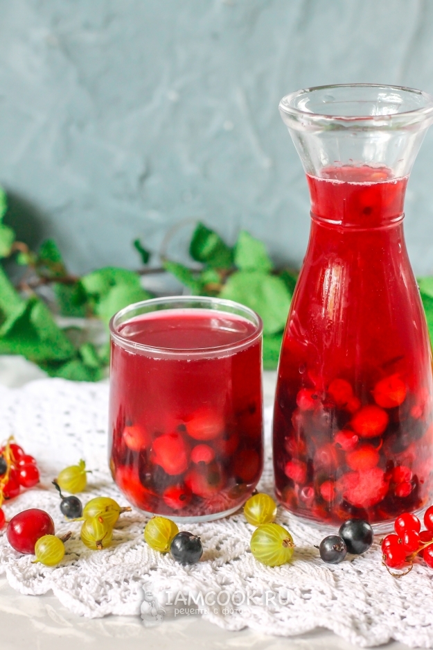 Разлейте ягодный компот в кувшин и стаканы, чашки, при желании охладите и подайте к столу.