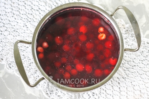 Отварите с момента закипания около 10-12 минут. За это время ягоды опустятся на дно и потеряют свою форму. Попробуйте напиток на вкус, подкорректируйте при необходимости. Выключите нагрев.