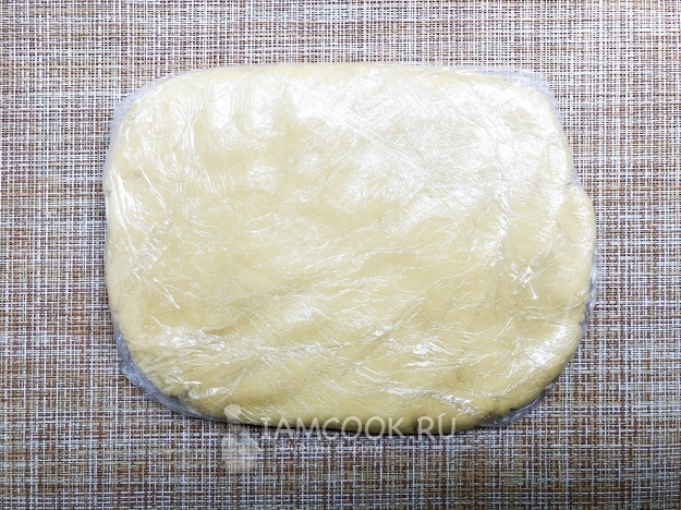 Сделайте из теста плоский диск, заверните его в пленку и уберите в холодильник на 1 час.