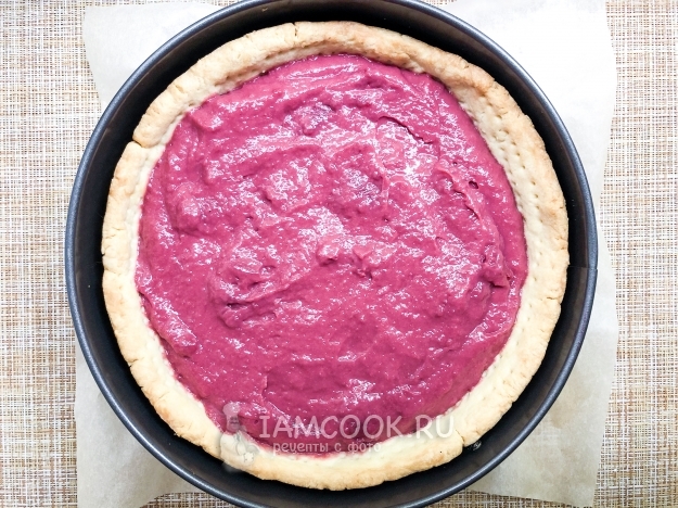 В выпеченную песочную основу выложите малиновый крем и запекайте 10 минут при температуре 180 градусов.