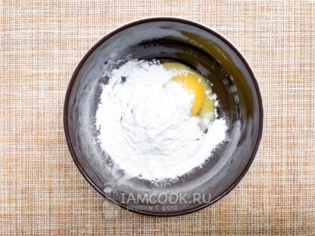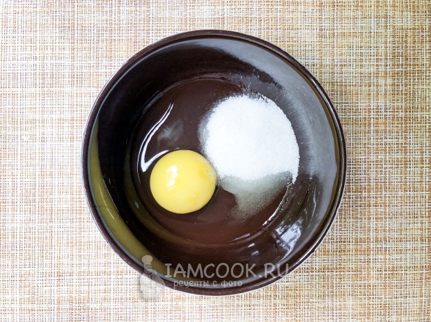 1 яйцо взбейте с сахаром (40 г) венчиком, чтобы сахар растворился.