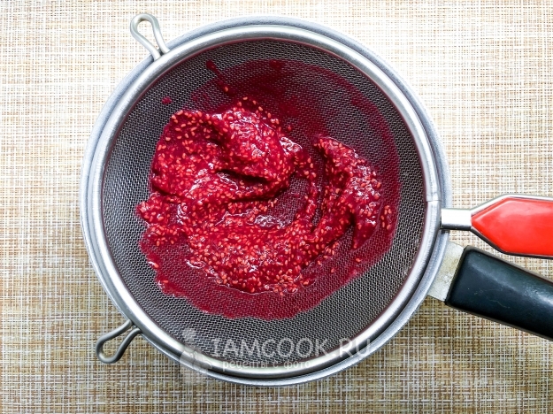 Затем необходимо протереть малину через сито, чтобы избавиться от косточек.