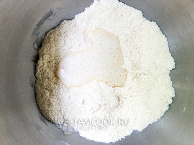 Добавьте взбитое яйцо в крошку и быстро замесите тесто.