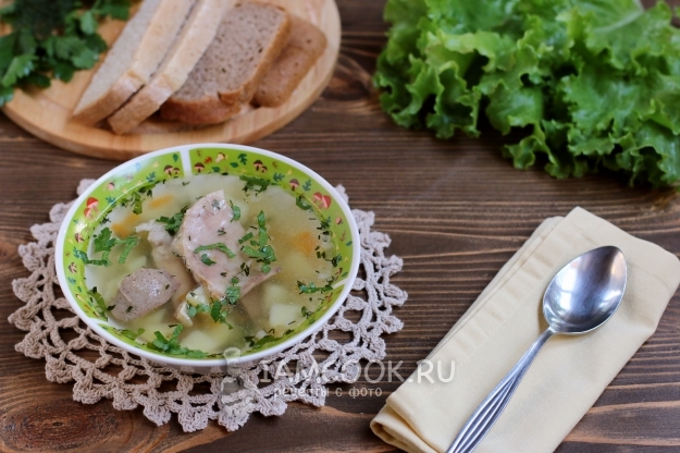Готовый суп с кроликом можно разливать по тарелкам и подавать.